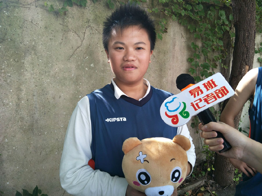 比赛时,采访小队又采访了1509班作为观众的黄祖韬同学,他认为这次篮球赛非常精彩,而且能促进同学之间的情谊,他希望所有参赛的同学越打越好,能在篮球场上大放异彩。