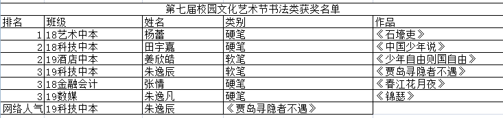 【南湖】第七届校园文化艺术节书法类获奖名单