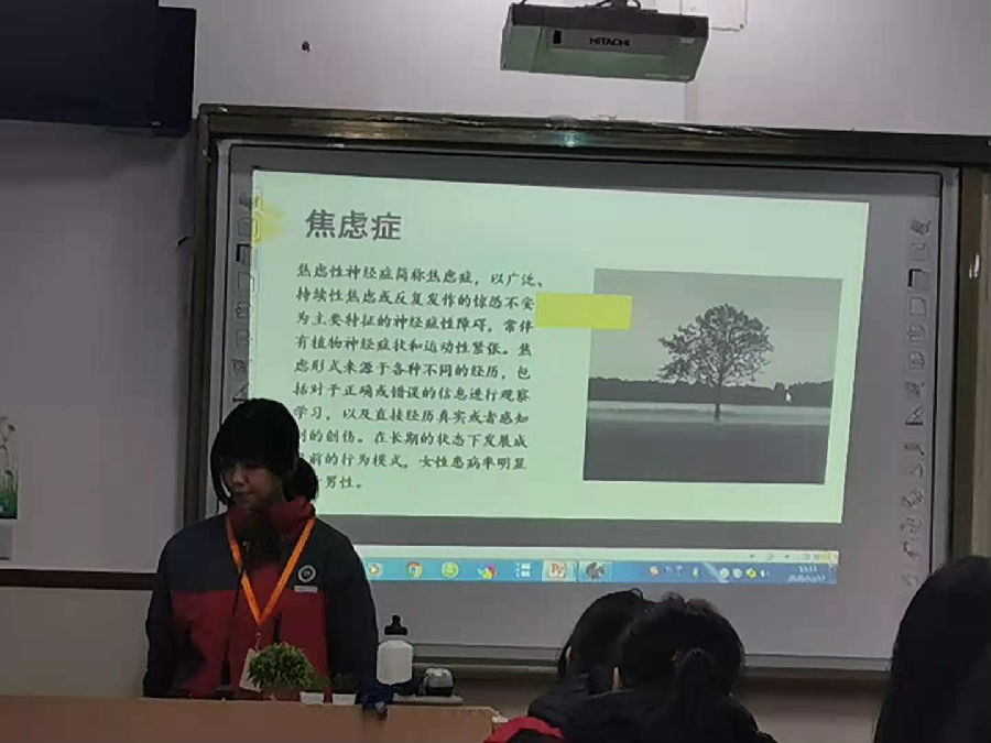 心理主题的班会课是王曼慧同学主持的 主题是焦虑症