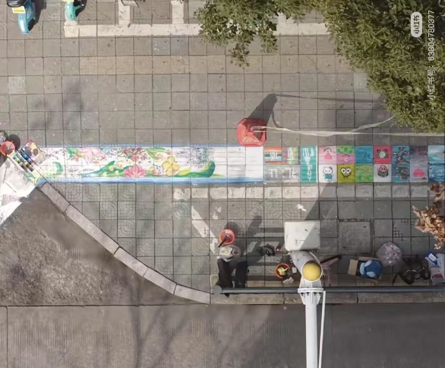 方寸心选择用鲜艳色彩改造盲道,即是美学表达,更是功能优化,大红、大绿等 高饱和度颜色帮助低视力者识别盲道;绘画过程本身则成为公众参与的”行为艺术“,吸引路人从围观到行动。视力障碍群体常因”不可见“而被忽视。方寸心通过艺术化表达,将抽象的权利诉求转化为具象的公共事件。这种行为让社会重新审视”无障碍“不仅是设施完善,更是对多元生存方式的尊重。