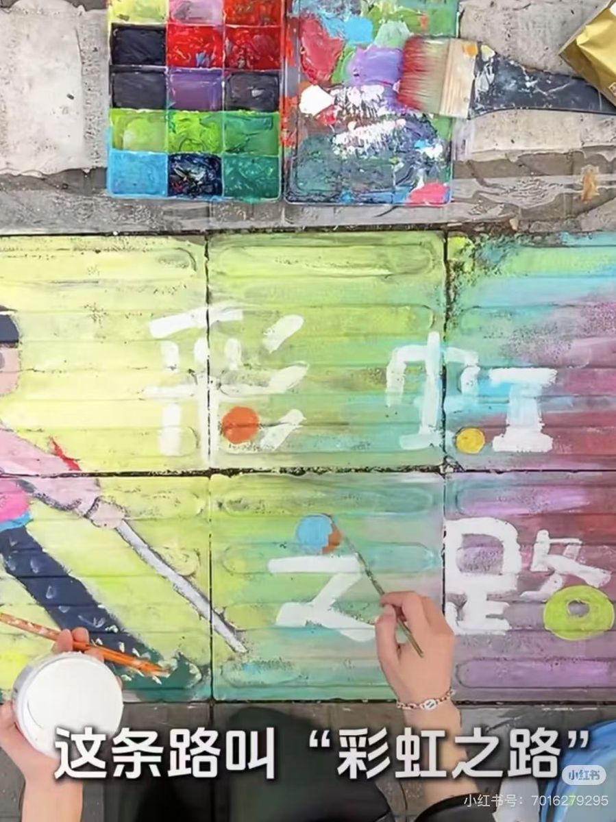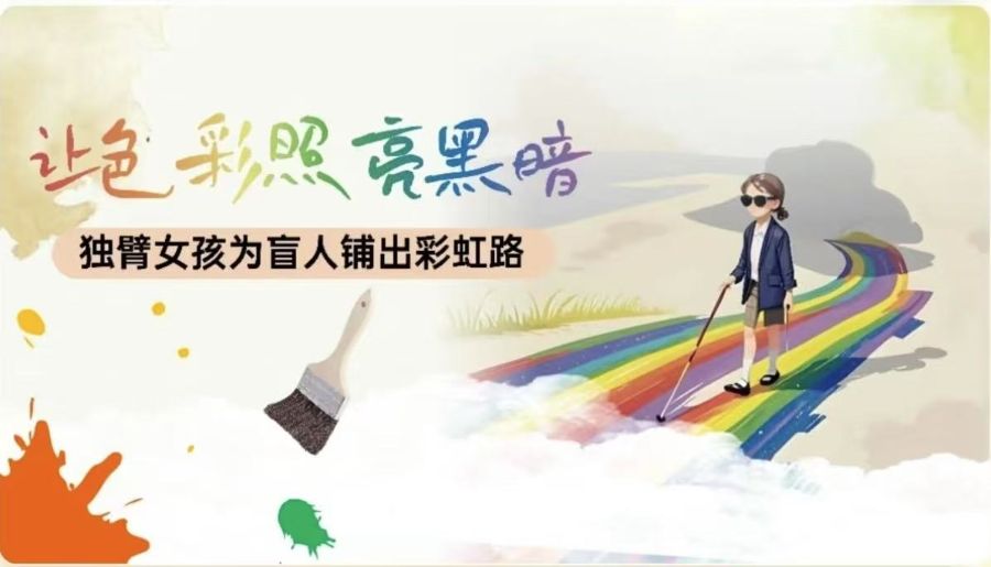 方寸心用独臂绘制的“彩虹之路“‘是一场关于残疾与完整的实践,她的身体缺陷与盲人的视觉缺陷,共同映照出社会文明的短板;而公众的集体参与,则证明了”不完美“的世界可以通过共治趋向完善。这条道路的色彩或许会褪去,但它已在人们心中铺成了一条永久的”文明盲道“。